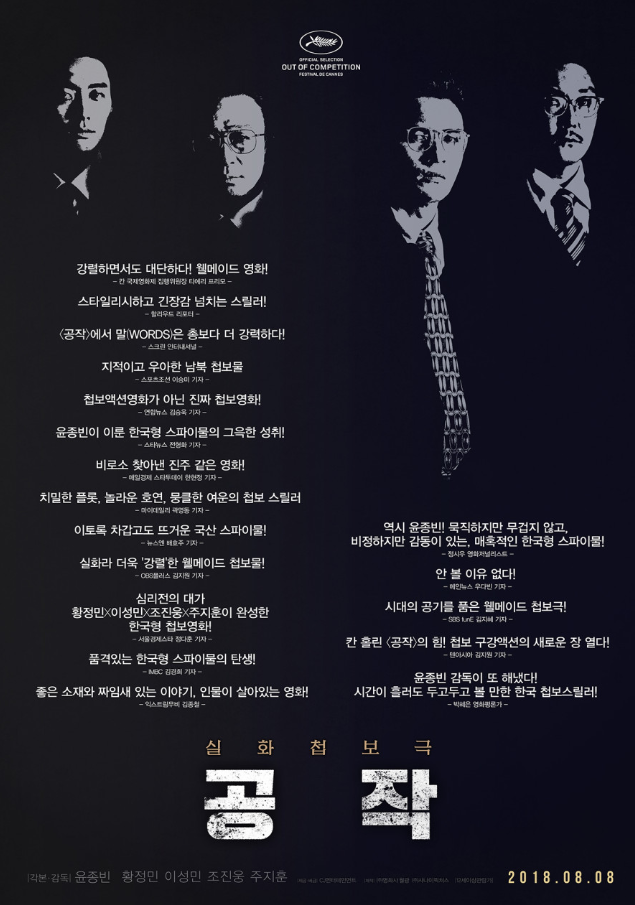 영화 '공작'은 2018년 8월 8일에 개봉한 대한민국의 첩보 드라마 영화입니다. 윤종빈 감독이 연출하고 황정민, 이성민, 조진웅, 주지훈 배우 등이 출연했습니다. 1990년대 중반, 북한 핵 개발 실체를 파악하기 위해 북으로 잠입한 남한 스파이 '흑금성' 박석영의 실화를 바탕으로 한 작품입니다. 남북 간의 첨예한 대립 속에서 벌어지는 은밀하고 치열한 첩보전과, 이념을 넘어선 인간적인 교류, 그리고 냉전 시대의 잔재를 섬세하게 그려내며 관객들에게 깊은 긴장감과 함께 묵직한 메시지를 전달했습니다. 화려한 액션보다는 심리적인 압박감과 미묘한 관계 변화를 통해 스파이 영화의 새로운 경지를 열었다는 평가를 받으며 평단과 관객 모두에게 극찬을 받았습니다.