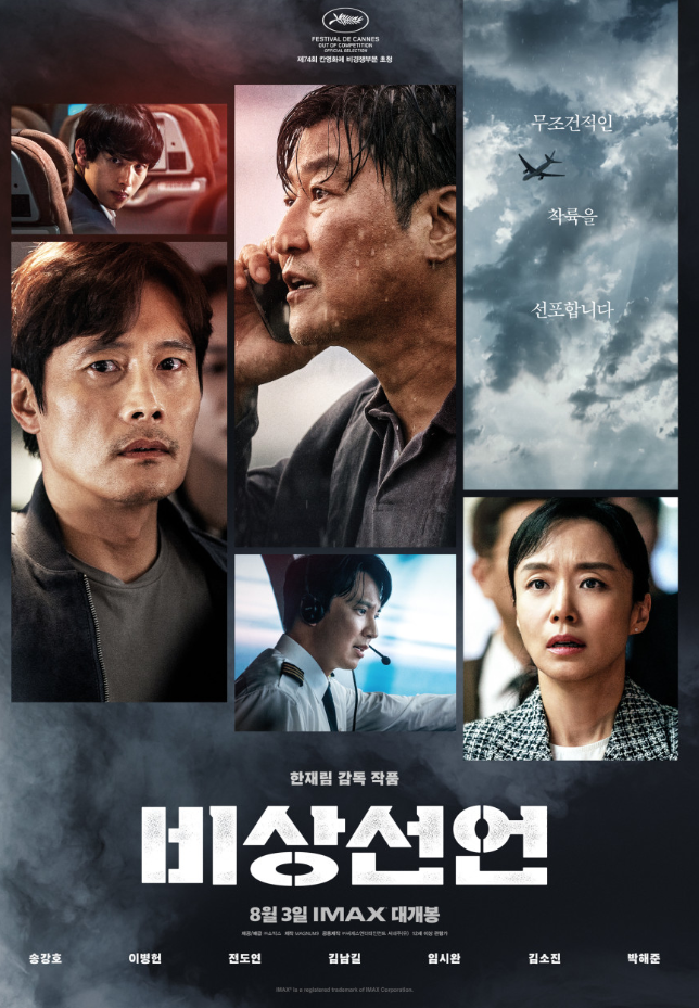 한편, 젊은 재혁(이병헌)은 딸의 아토피 치료를 위해 불안한 마음을 감춘 채 같은 비행기에 탑승합니다. 그는 과거의 트라우마로 인해 비행에 극심한 공포를 느끼지만, 딸을 위해 용기를 냅니다. 이륙 직후, 승객 중 한 명이 갑작스러운 호흡 곤란과 함께 피를 토하며 사망하는 사건이 발생합니다. 순식간에 기내는 공포에 휩싸이고, 연이어 유사한 증상을 보이는 환자들이 속출하면서 비행기는 아비규환으로 변합니다. 부기장 현수(김남길)는 침착하게 상황을 통제하려 하지만, 원인을 알 수 없는 바이러스의 급격한 확산에 속수무책입니다. 지상에서는 인호가 테러 예고 글의 작성자를 추적하던 중, 탑승객 중 한 명인 진석(임시완)이 바이러스를 퍼뜨린 범인임을 알게 됩니다. 그는 과거 실험실에서 개발된 치명적인 바이러스를 몰래 반입하여 기내에 살포한 것입니다. 사태의 심각성을 인지한 정부는 '비상선언'을 발동하고, 해당 항공기의 착륙을 극도로 꺼립니다. 바이러스의 전파 가능성에 대한 우려와 국민들의 불안감이 극에 달했기 때문입니다. 착륙을 거부당한 채 국제 영공을 떠돌던 비행기는 연료마저 바닥나며 절체절명의 위기에 놓입니다. 기내에서는 감염의 공포와 죽음의 위협 속에서 승객들의 인간적인 본성이 드러납니다. 극도의 이기심을 보이는 사람들과, 서로를 돕고 희생하려는 사람들 사이의 갈등과 연대가 엇갈립니다. 재혁은 과거의 트라우마를 극복하고 딸을 지키기 위해 용기를 내고, 승무원 희진(김소진)은 침착하게 승객들을 돌보며 헌신적인 모습을 보입니다. 지상에서는 인호가 아내와 딸을 구하기 위해, 그리고 더 이상의 희생을 막기 위해 필사적으로 방법을 찾아 나섭니다. 그는 과거 동료였던 국토부 장관 숙희(전도연)에게 간절하게 도움을 요청하고, 숙희 또한 국민들의 안전과 인도적인 가치 사이에서 고뇌하며 어려운 결정을 내려야만 합니다. 결국, 연료가 거의 소진된 비행기는 극적으로 한국으로 향하게 되고, 착륙을 위한 마지막 사투를 벌입니다. 과연 이들은 무사히 착륙하여 재앙을 막을 수 있을까요? 그리고 극한의 위기 상황 속에서 인간성은 어떻게 발현될까요? 영화는 예측 불허의 재난 상황 속에서 인간의 다양한 면모를 긴장감 넘치게 그려냅니다.