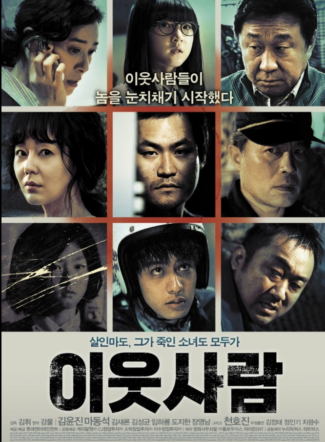 영화 "이웃사람"은 평범한 아파트 단지라는 일상적인 공간에서 벌어지는 연쇄 살인 사건을 통해 우리 주변에 숨어 있을지도 모르는 위험과 그로 인한 공포감을 극대화한 스릴러 영화였습니다. 이웃이라는 익숙한 존재가 순식간에 공포의 대상으로 변할 수 있다는 설정은 현실적인 불안감을 자극하며 깊은 몰입감을 선사했습니다. 김성균 배우의 소름 돋는 연기는 단연 압권이었습니다. 겉으로는 평범한 이웃처럼 행동하지만, 속으로는 섬뜩한 살인 본능을 숨기고 있는 류승혁 캐릭터를 완벽하게 소화하며 극의 긴장감을 최고조로 끌어올렸습니다. 그의 차갑고 섬뜩한 눈빛과 미소는 보는 이들에게 소름 끼치는 공포감을 안겨주었습니다. 김윤진 배우의 절절한 모성애 연기는 딸을 잃은 엄마의 슬픔과 절망감을 고스란히 전달하며 안타까움을 자아냈습니다. 딸을 찾기 위해 고군분투하는 그녀의 모습은 강한 인상을 남겼습니다. 마동석 배우는 험악한 외모와는 달리 속정 깊은 사채업자 역할을 통해 의외의 인간적인 매력을 선보이며 극에 활력을 불어넣었습니다. 김환희 배우의 불안하고 초조한 연기는 안타까움을 자아내며 극의 몰입도를 높였습니다.